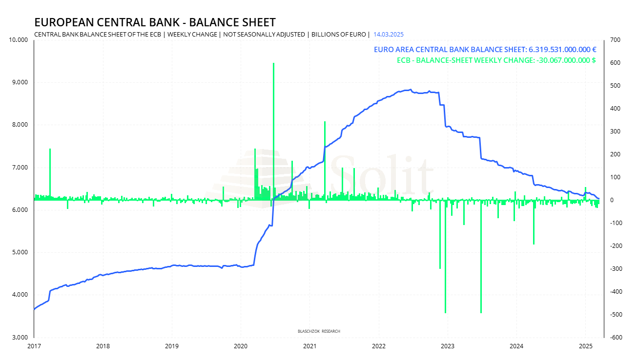 Der Goldpreis hat in der vergangenen Woche erstmals über der psychologisch wichtigen Marke von 3.000 US-Dollar je Feinunze geschlossen und beendete den Handel bei 3.023 US-Dollar. Einen zusätzlichen Auftrieb erhielt das Edelmetall am Mittwochabend, als die US-Notenbank (Fed) überraschend ankündigte, ihr Programm zur Reduzierung der Bilanzsumme (QT) praktisch einzustellen. Diese dovishe Wendung deutet auf eine künftige Lockerung der Geldpolitik hin – ein grundsätzlich bullisches Signal für Gold. In der Folge sprang der Preis auf ein neues Allzeithoch von 3.057 US-Dollar.