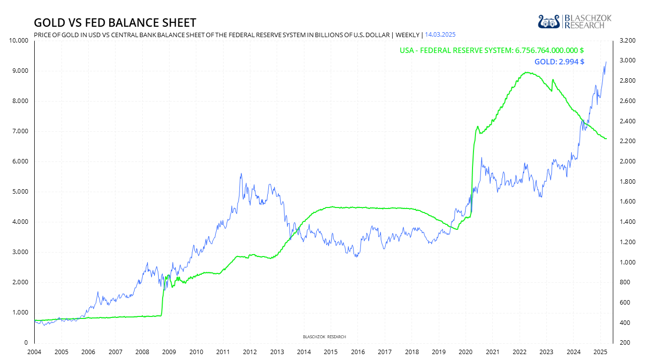 Bemerkenswert ist, dass der Goldpreis trotz einer schrumpfenden Geldmenge eine eindrucksvolle Rallye von über 50 Prozent verzeichnen konnte – ein scheinbarer Widerspruch zu klassischen ökonomischen Mustern.