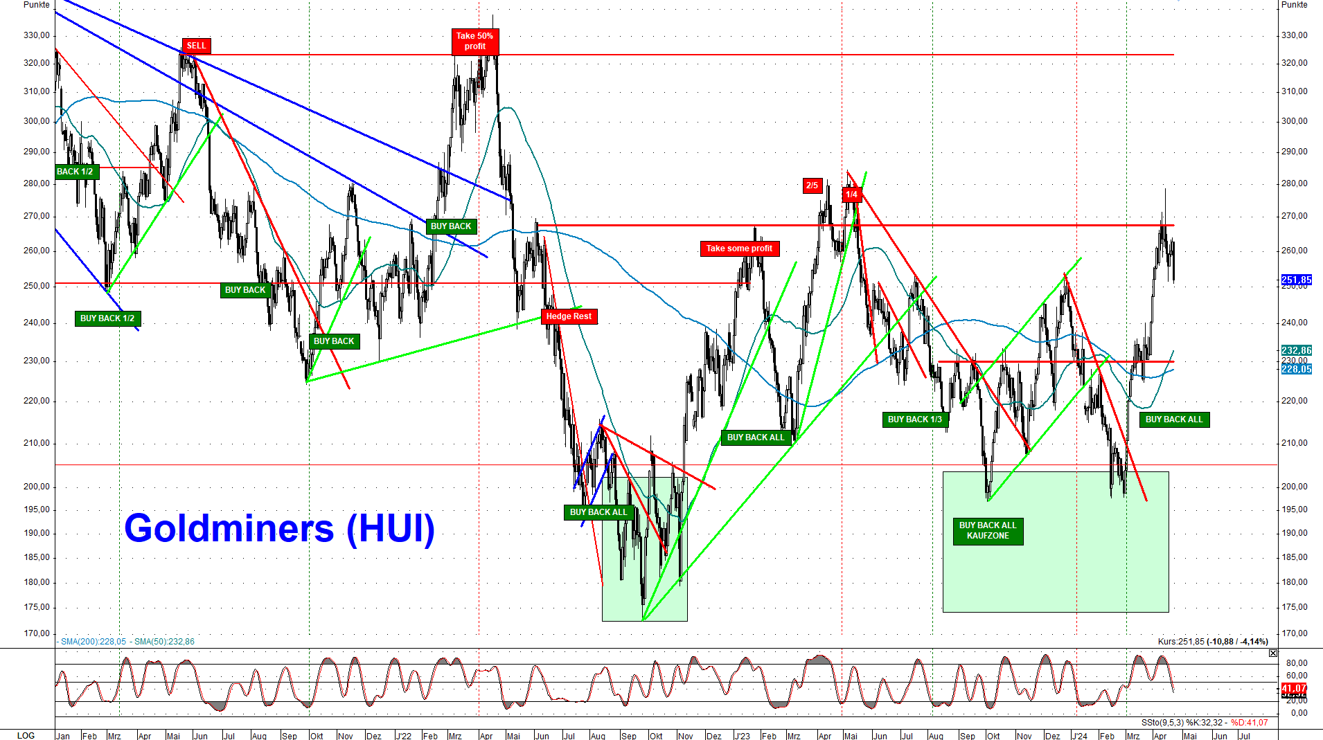 Sollte der Goldpreis seine Rallye in diesem Jahr fortsetzen können, ist mit einer Rallye der Goldminenaktien zu rechnen, wobei der HUI mindestens bis in den Bereich von 330 bis 370 Punkte vordringen sollte. Auch 600 Punkte im HUI sind im Falle neuer QE-Programme ein sehr realistisches Kursziel, weshalb man jetzt jeden Rücksetzer für ein strategisches Investments auf Sicht von ein bis zwei Jahren nutzen sollte.