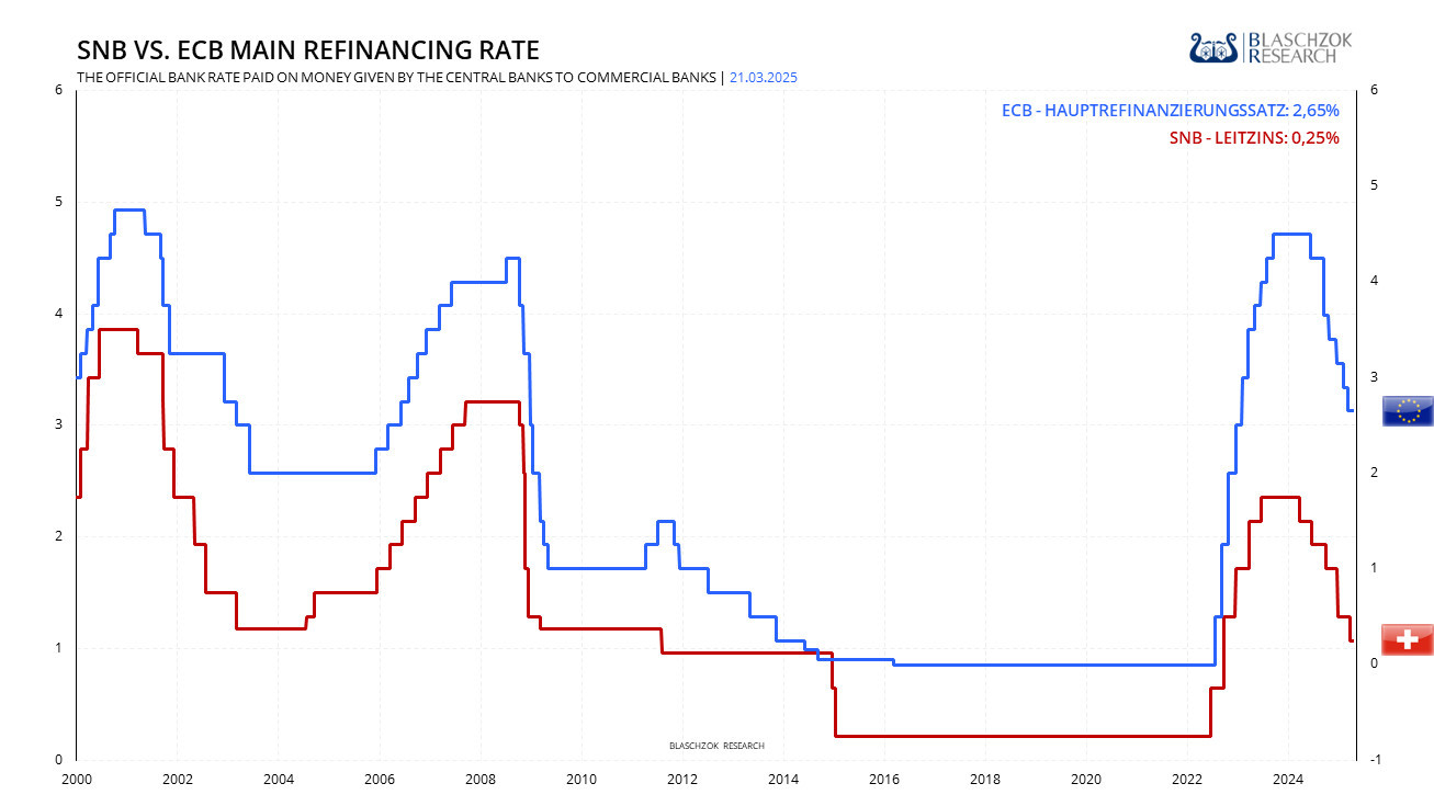 Diese Politik gefährdet langfristig die wirtschaftliche Stabilität und fördert eine kurzfristige Verschuldungsmentalität zulasten echter, nachhaltiger Produktivitätssteigerung. Angesichts der neuen Billionenschulden in Deutschland wäre es aus Sicht der Österreichischen Schule an der Zeit, dass die SNB ihre Strategie der künstlichen Abwertung des Frankens überdenkt. Es macht wenig Sinn, sich an den strukturellen Niedergang des Euro zu koppeln. Vielmehr sollte man eine Aufwertung des Frankens zulassen und dem Markt die notwendigen Anpassungsprozesse überlassen – denn eine starke Währung bringt der Schweizer Volkswirtschaft auf lange Sicht mehr Vorteile als Nachteile.