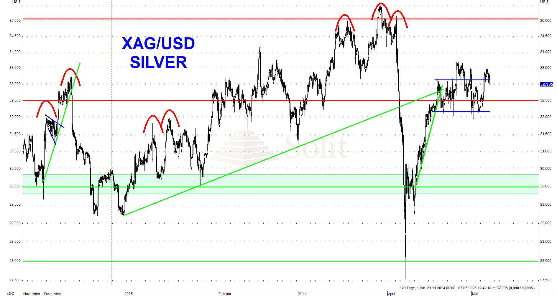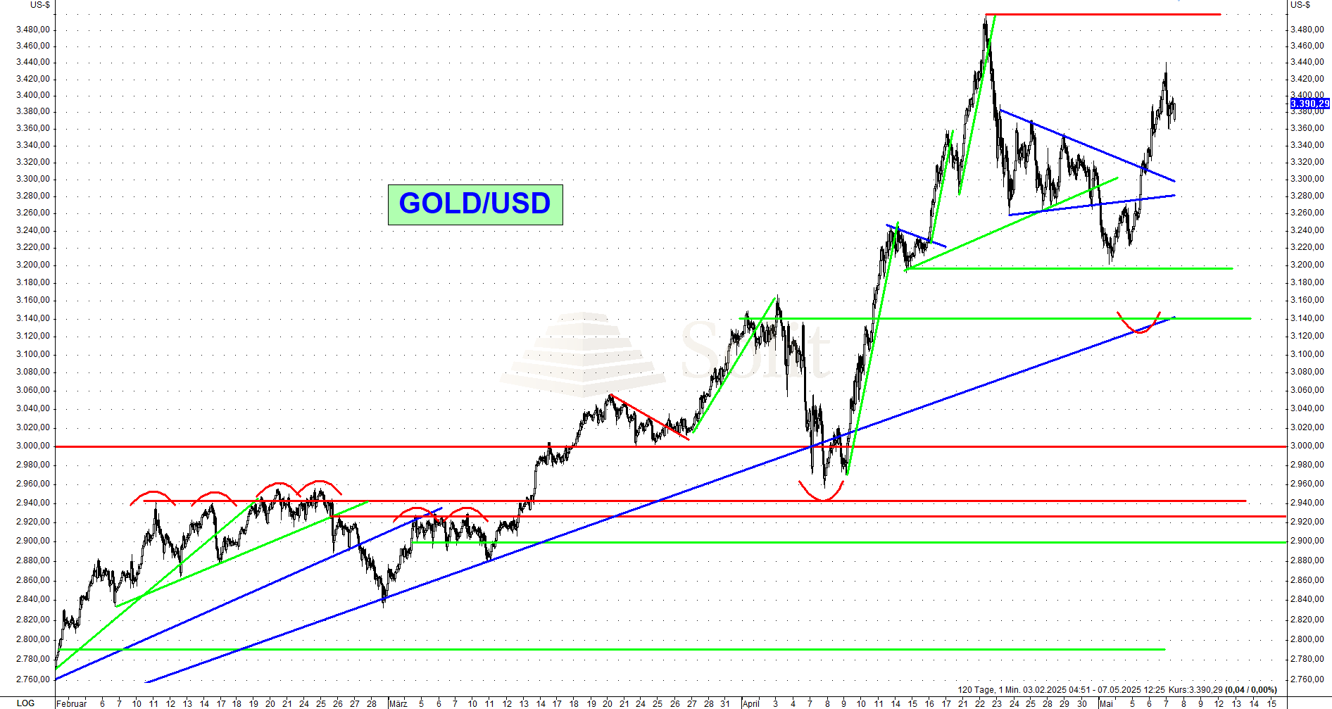 Nachdem in der letzten Woche die Chinesen starke Verkäufer am Goldmarkt waren, treten sie in dieser Woche nach einem verlängerten Feiertagswochenende wieder als Käufer auf und schon geht es mit dem Goldpreis wieder nach oben auf mittlerweile 3.400$ je Feinunze. Das tägliche Handelsvolumen an der Shanghai Gold Exchange war im März mit 40,9 Milliarden US-Dollar fast halb so hoch wie das Handelsvolumen an der COMEX mit 90,4 Milliarden US-Dollar. Im OTC-Handel dominiert jedoch noch immer die LBMA mit 138 Mrd. US-Dollar täglichem Handelsvolumen, während es an der Shanghai Gold Exchange geringe 10,8 Mrd. US-Dollar sind.