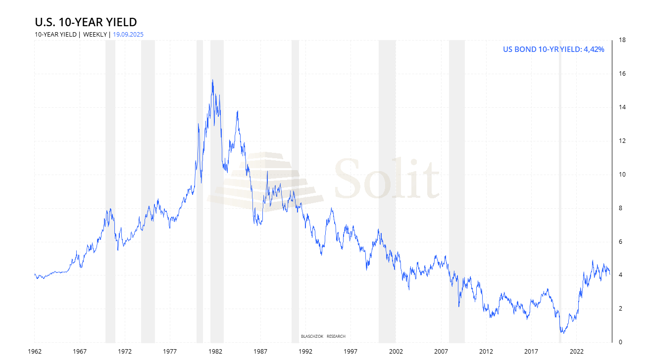 Die Fed hat ihren Leitzins um 25 Basispunkte gesenkt, sowie zwei weitere Zinssenkungen in diesem Jahr in Aussicht gestellt, obwohl die Kern PCE Inflation im August bei 2,9 % lag und den vierten Monat in Folge wieder anzog. Dieser Zinsschritt erfolgte, während der Aktienmarkt auf Rekordniveau handelt und die Renditen am Anleihemarkt tendenziell weiter ansteigen. Reagiert die Fed bei einer Abschwächung der Wirtschaft erneut mit mehr Liquidität und billigeren Krediten, steigen voraussichtlich die Inflationserwartungen, worauf die langfristigen Zinsen, trotz Zinssenkung wieder ansteigen sollten, womit sich das stagflationäre Umfeld nur weiter verschärfen würde. Die Fed hat sich längst in eine Ecke gepinselt, aus der es diesmal kein Entkommen gibt.