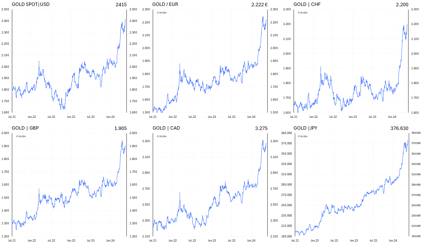 Der Goldpreis stieg in der vergangenen Handelswoche um 2,3% auf 2.415$ an, womit ein neues Allzeithoch auf Basis von Tages- und Wochenschlusskursen erreicht wurde. Am Montag wurde im frühen asiatischen Handel dann auch ein neues Intraday-Allzeithoch bei 2.450$ je Feinunze erreicht. Immer mehr Anleger, Mainstream-Investoren und Fonds, die die Rallye verpasst haben, sind plötzlich von den Argumenten für Gold überzeugt und wollen spät noch einsteigen, obwohl der Markt reif für eine gesunde Korrektur wäre, bevor sich die Hausse am Goldmarkt fortsetzen dürfte.