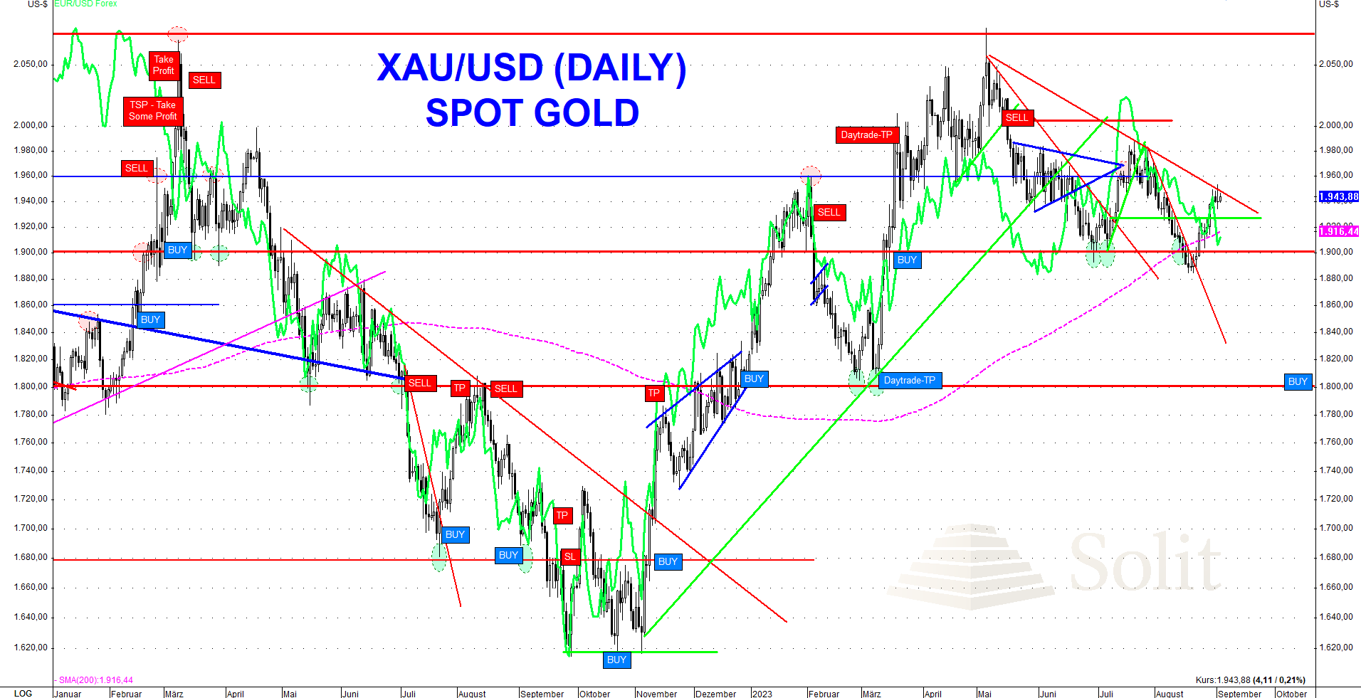 Der Zinsentscheid der US-Notenbank am Mittwochabend dürfte diesmal einen starken Einfluss auf den Goldpreis haben. Gold hat sich in den letzten Wochen zwischen einem Abwärtstrend und einer wichtigen Unterstützung bei 1.900$ eingekeilt...