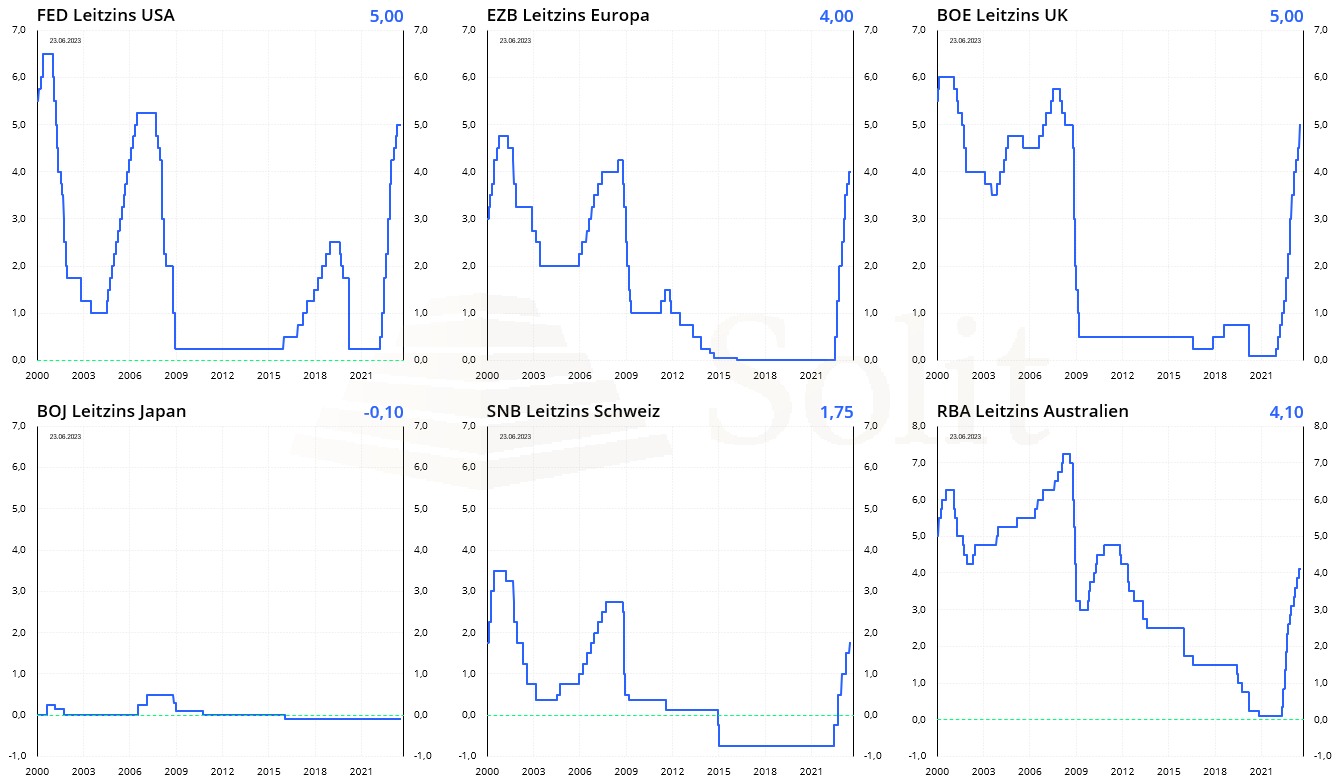 Stattdessen werden nach Aussagen der Notenbanker die Zinsen nicht gesenkt und weiter angehoben sowie über Jahre auf hohem Niveau gehalten werden...