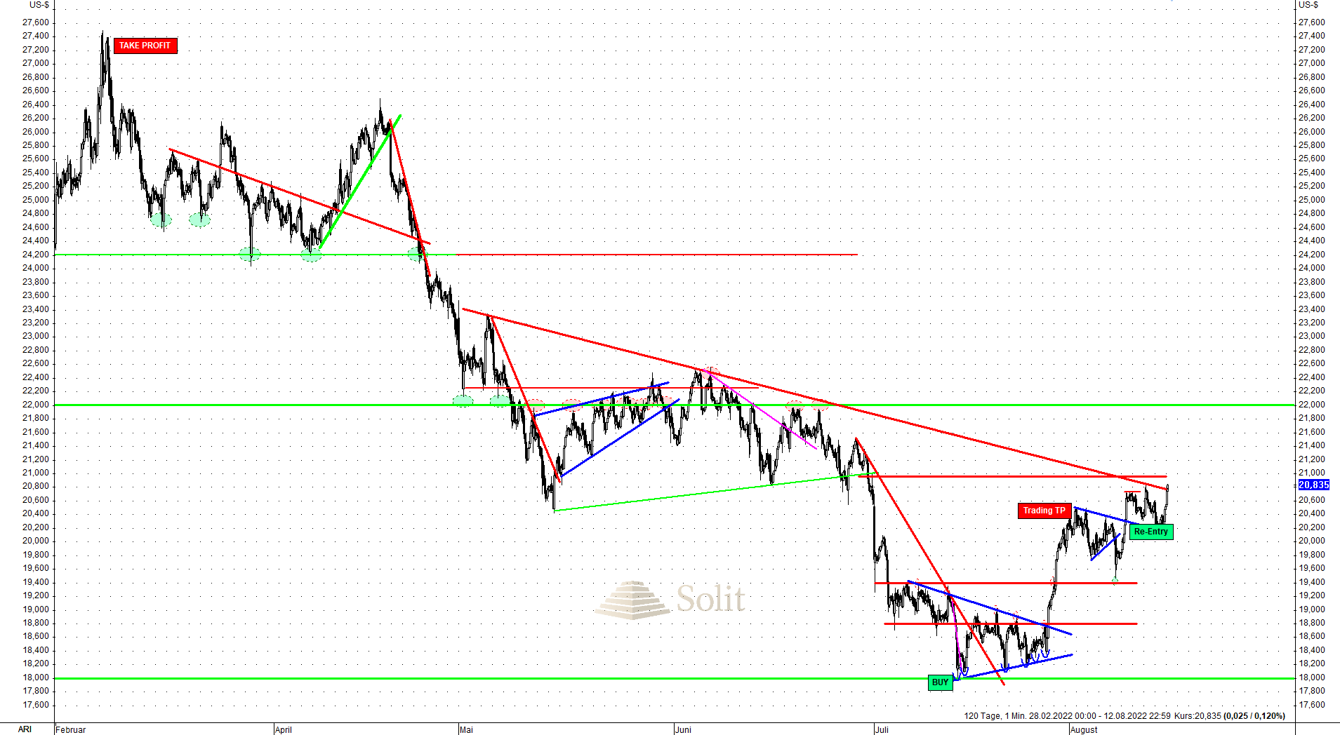 Es scheint, als hätte es eine leichte Schwäche am Goldmarkt gegeben. Zumindest haben sich bis zum Stichtag Dienstag viele Käufer zurückgehalten, was logisch ist, da diese erst einen Test des Tiefs sehen wollen, bevor sie in den Markt gehen.