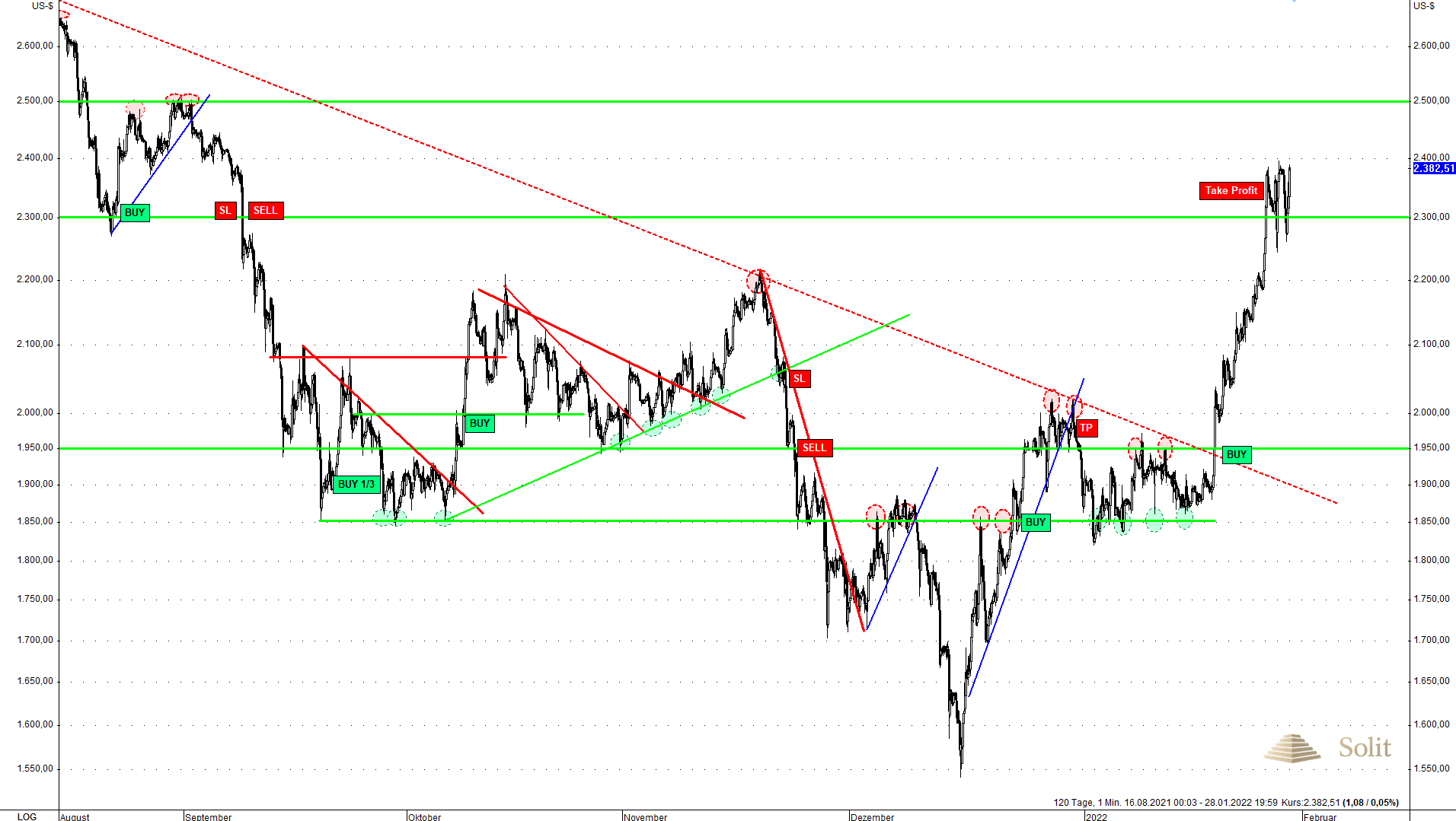 Auf diese Meldung hin sprang der Goldpreis vom Fleck weg 20 US-Dollar nach oben und der Rohölpreis 2,5 US-Dollar auf fast 95 US-Dollar je Fass. Besonders stark reagierte der Palladiumpreis mit einem Plus von 160 US-Dollar (+7%) binnen 15 Minuten, nac...