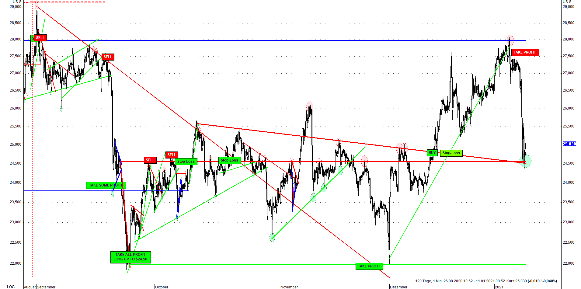 Der Silberpreis sprang bereits am Donnerstag aus dem Stand um 6,1% nach oben und eröffnete am Montagmorgen mit einem Plus von 2 US-Dollar (+7,4%) zum Freitagsschlusskurs ...